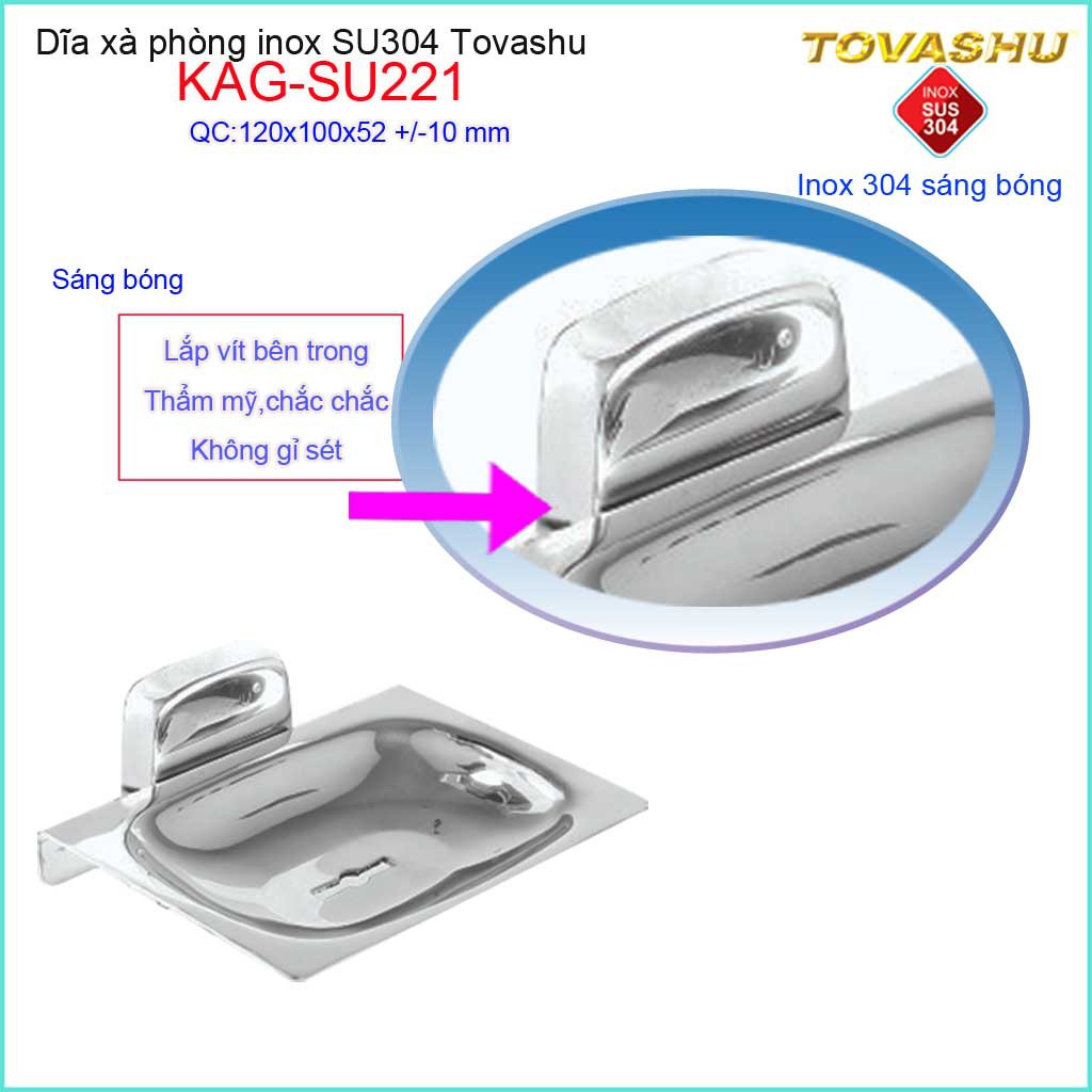 Giới thiệu Dĩa xà phòng Tovashu KAG-304SU221, giá để xà bông cục, kệ xà bông Inox SUS304 Nhật Bản