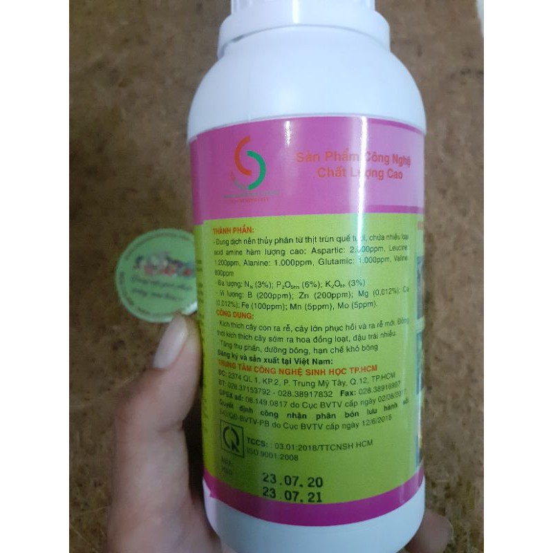 Khoáng vi lượng: B – 200 ppm; Zn – 200 ppm; Mg – 120 ppm; Ca – 120 ppm; Fe – 100 ppm.