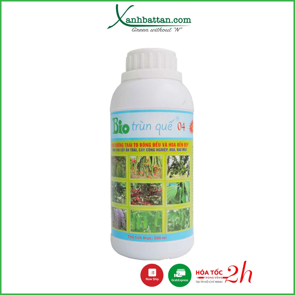 Dịch Trùn Quế Hữu Cơ Bio 04Dịch Trùn Quế Hữu Cơ Bio 04 là dòng sản phẩm của Trung Tâm Công Nghệ Sinh Học TPHCM. Dòng sản phẩm dịch trùn quế Bio được sản xuất từ nguồn trùn quế tươi, qua công nghệ thủy phân bằng hệ enzyme phân hủy nhằm tạo ra chế phẩm chứa hàm lượng khoáng NPK, amino acid và hệ vi sinh vật có lợi cho cây trồng một cách dồi dào. Dịch trùn quế Bio 04 có chức năng chính trong giai đoạn ươm mầm cây con, giúp dưỡng hoa, hạn chế rụng hoa, tăng khả năng đậu quả cho cây trồng.