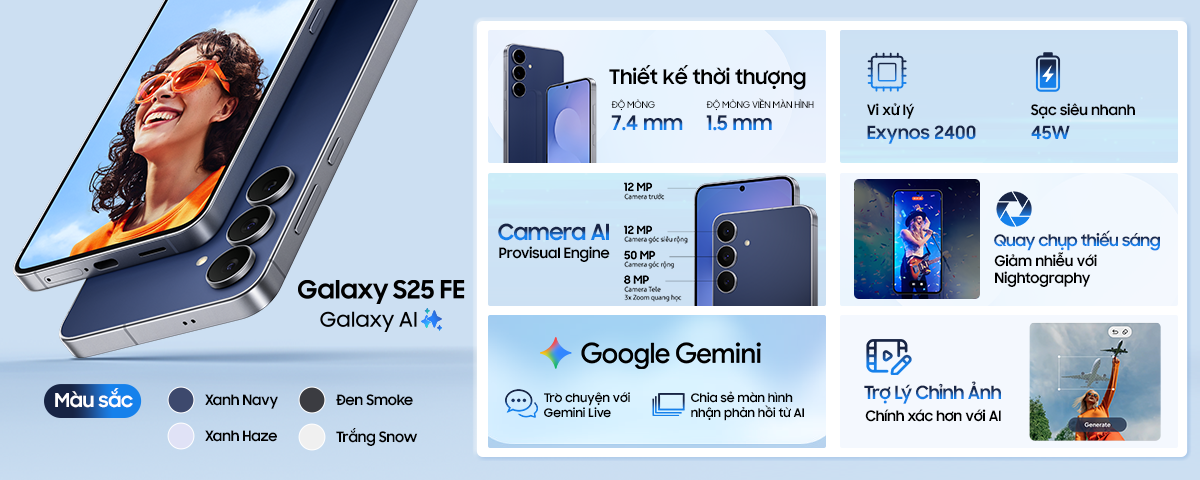 Galaxy S25 FE - Thiết kế thời thượng, chuẩn concert camera