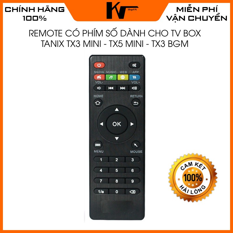 Điều khiển cho Android TV Box sử dụng rockchip, amlogic, có phím sốKhiển hồng ngoại tương thích với các Android TV Box TX3 mini, TX5 mini, TX3 BGM, T95S và hầu hết các loại khác.