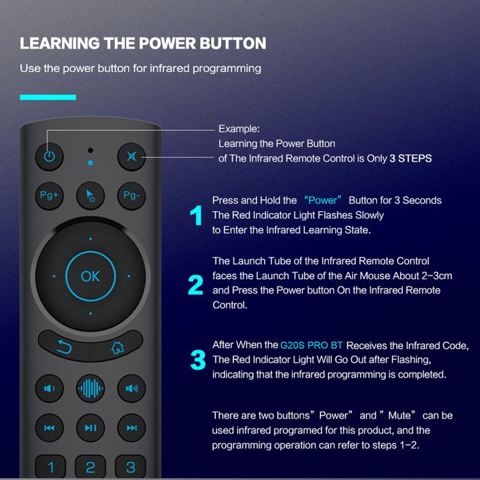 G20s Pro BT có phím Voice để hỗ trợ các Android TV Box hoặc SmartTV chạy HĐH AndroidTV sử dụng chức năng tìm kiếm giọng nói. (Không hỗ trợ cho các thiết bị sử dụng HĐH Tizen, WebOS, Firefox OS)