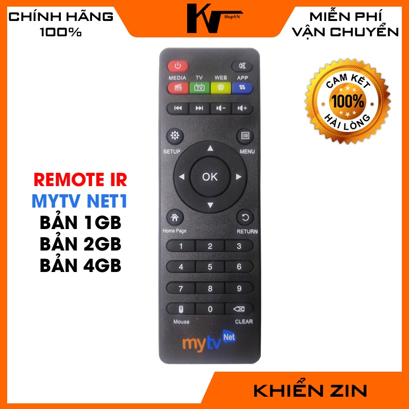 - Khiển hồng ngoại: Hàng zin bóc máy, dùng cho các Model MyTV Net1 phiên bản 1GB, 2GB, 4GB (không sử dụng cho các đầu thu MyTV của nhà mạng)