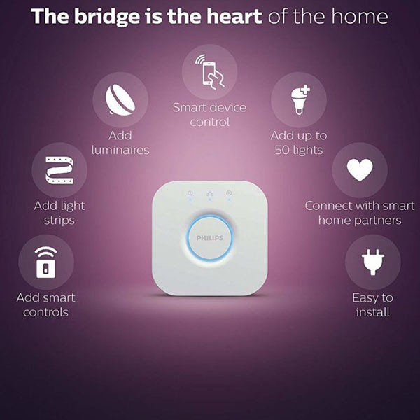 Điều Khiển Đèn Trung Tâm Philips HUE Bridge PH/VN - Điều Khiển Nhiều Đèn, Kết Nối Đèn Với Internet - Hàng Chính HãngTrung tâm điều khiển toàn bộ hệ thống đèn Philips Hue