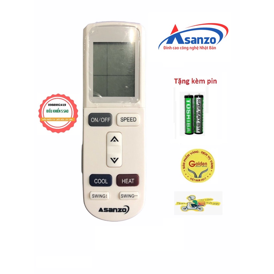Giới thiệu Điều khiển điều hòa Asanzo loại dài nhọn có nắp gập loại tốt thay thế khiển zin theo máy - Tặng kèm pin chính hãng