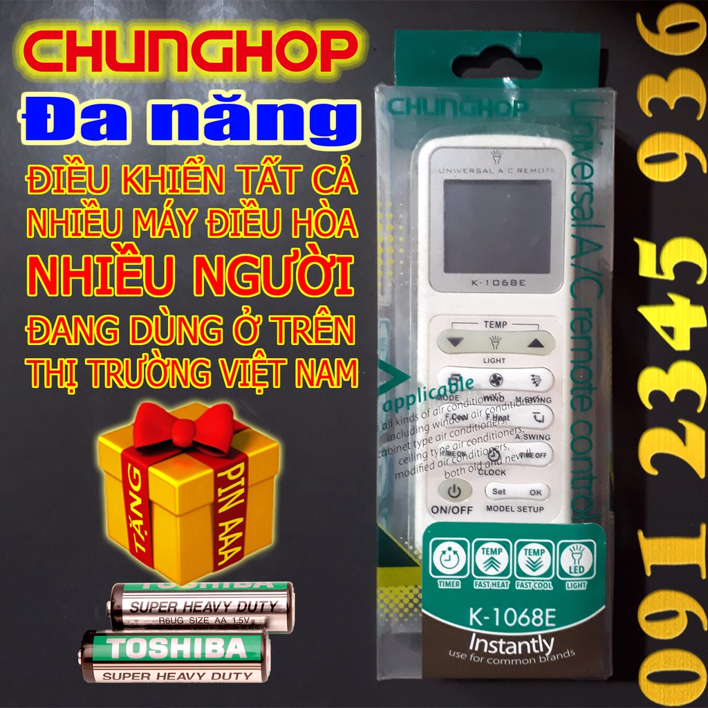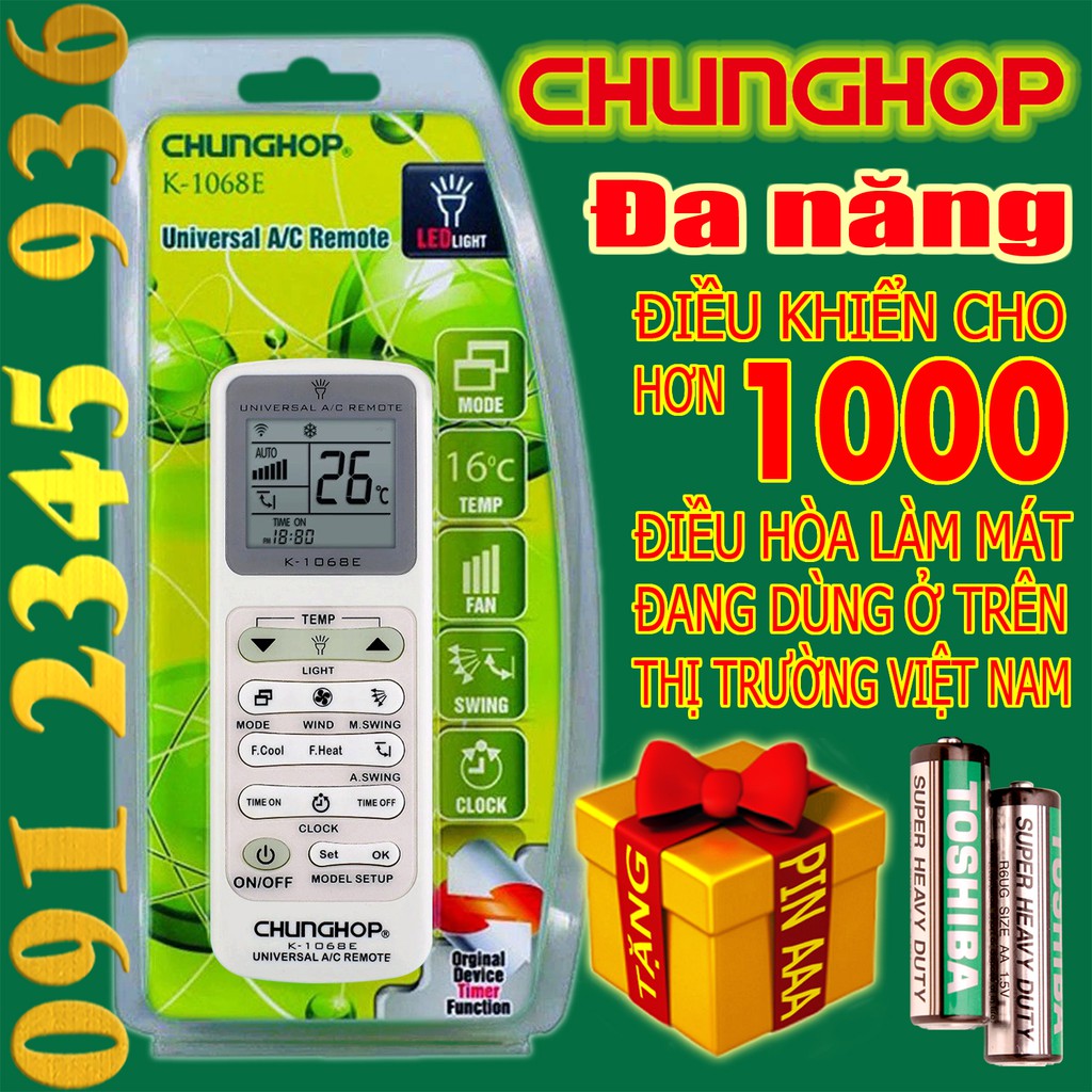 Giới thiệu Điều khiển Điều Hòa "ĐA NĂNG" CHUNGHOP K-1068E Chính Hãng "HÀNG ĐẸP" cho điều hòa. (Mẫu số 3)