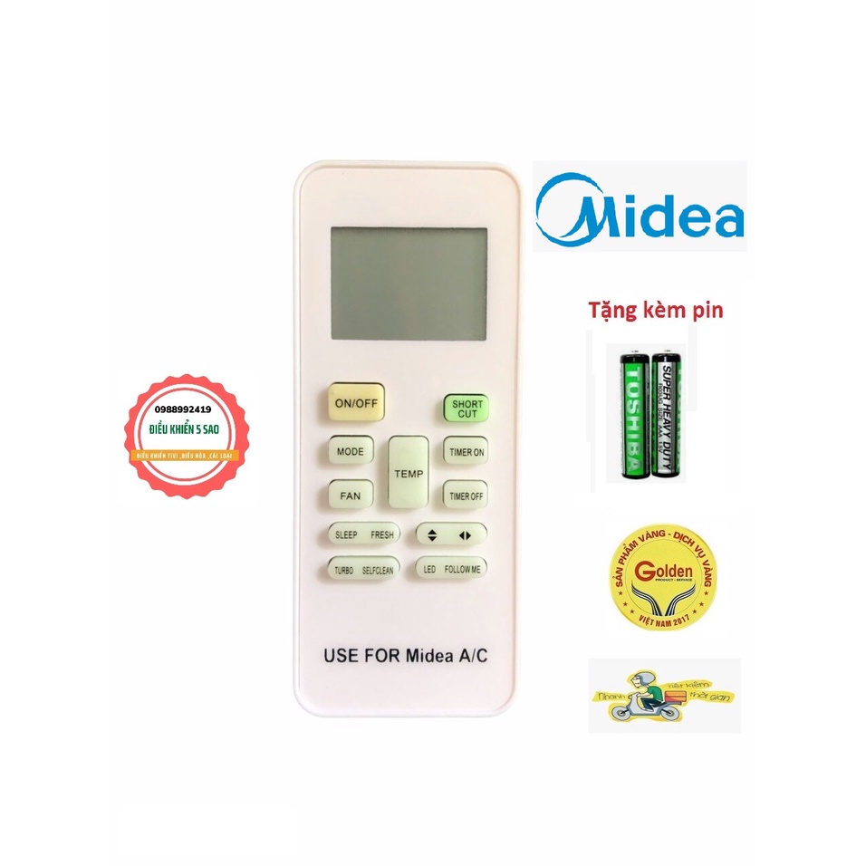 Điều khiển điều hòa Midea RG52B/BGE loại tốt thay thế điều khiển zin theo máy - Tặng kèm pin chính hãng
