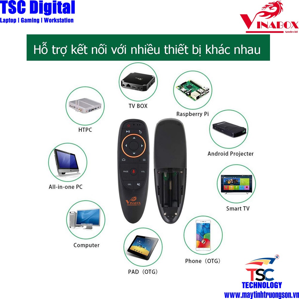 - Dùng với mọi loại Android TVBox (Cắm USB kèm theo remote là dùng). Tích hợp mic voice tìm kiếm giọng nói 1 chạm, phù hợp với tất cả thiết bị tích hợp voice assistant