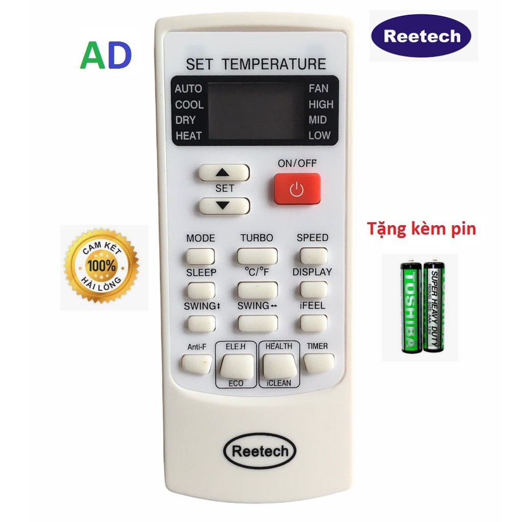 Giới thiệu ĐIỀU KHIỂN MÁY LẠNH REETECH YNK-H/102E - TẶNG KÈM PIN - REMOTE ĐIỀU KHIỂN ĐIỀU HÒA REETECH MẶT TRẮNG 1 NÚT ĐỎ