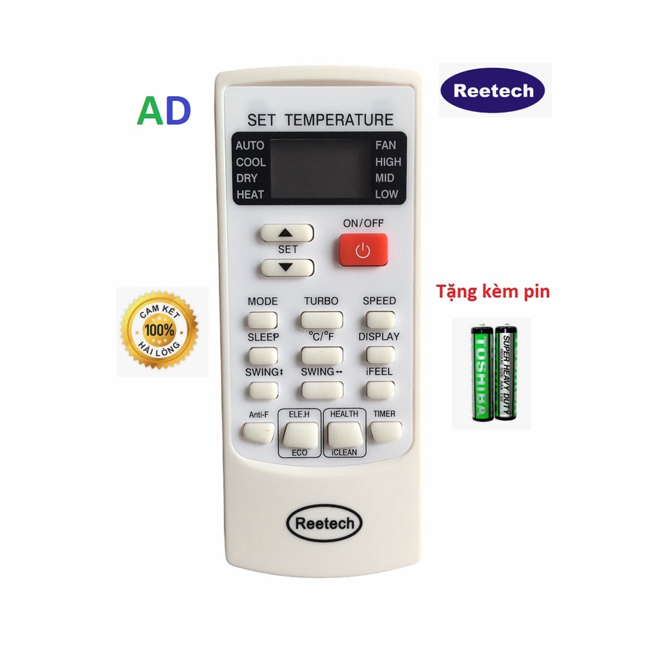 ĐIỀU KHIỂN MÁY LẠNH REETECH YNK-H/102E - TẶNG KÈM PIN - REMOTE ĐIỀU KHIỂN ĐIỀU HÒA REETECH MẶT TRẮNG 1 NÚT ĐỎ