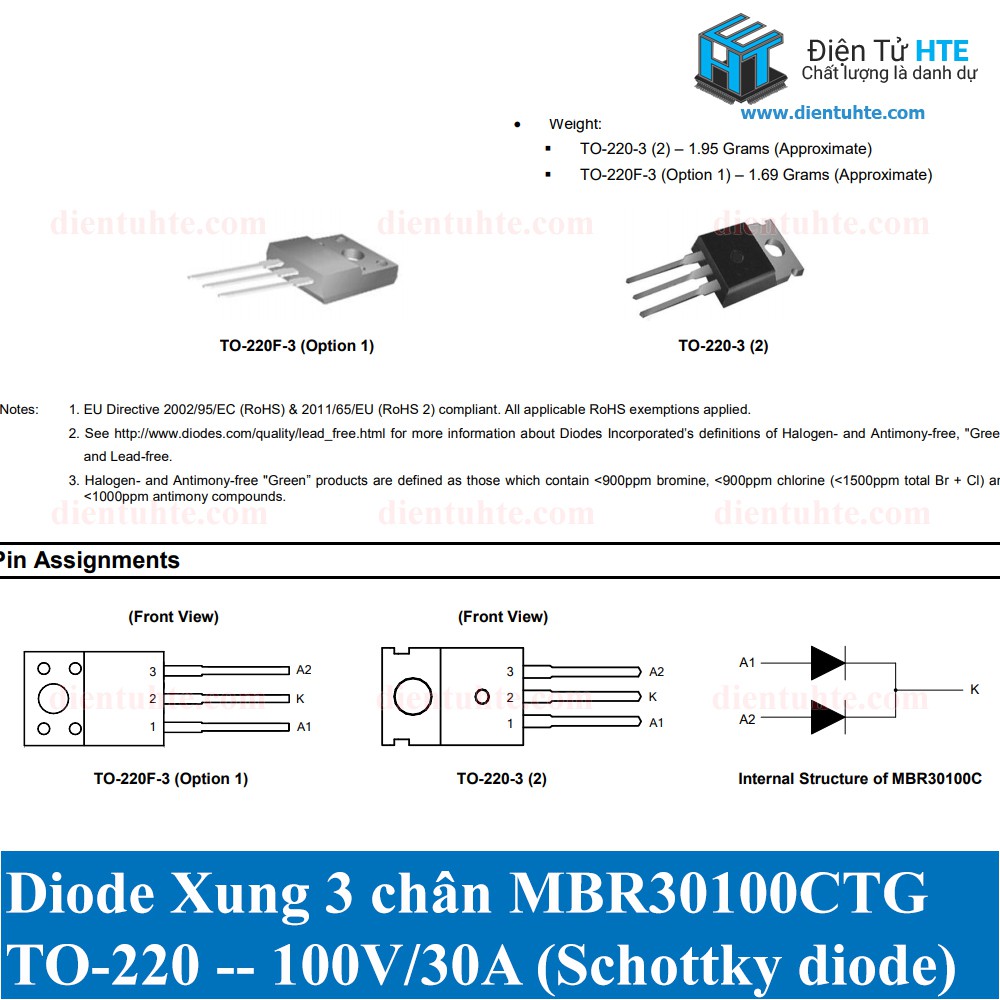 ĐIỆN TỬ HTE - KHO QUY NHƠN - CHI NHÁNH 2_x000D_Diode xung MBR30100CTG B30100G 100V 30A