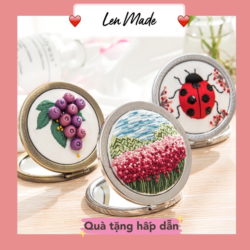 DIY bộ kit tự thêu tay gương tròn xinh xắn đầy đủ nguyên liệu quà tặng ý nghĩa lenmade(không kèm khung thêu)