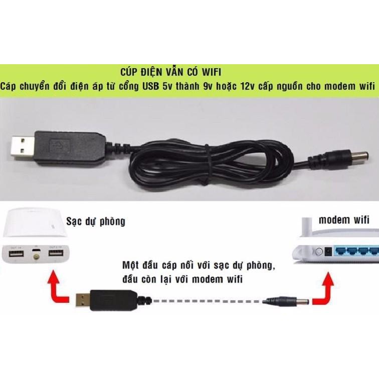 - Cáp chuyển đổi điện áp từ cổng USB 5V sang 12V cúp điện vẫn có Wifi và các thiết bị liên quan