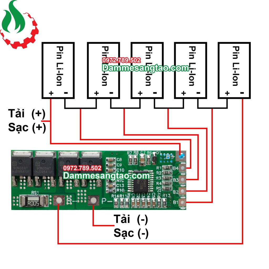 - Hai đường P- và B+ là Tải và Sạc. Không sử dụng đồng thời ngõ này 2 chức năng cùng lúc. Nghĩa là sạc thì không mở máy và nếu mở máy thì rút sạc khỏi mạch pin.