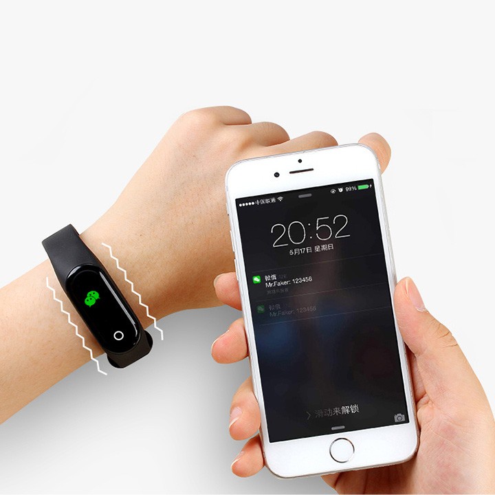 Đo Huyết Áp, Nhịp TimĐồng Hồ Thông minh Thể Thao Band M4 - báo cuộc gọi, tin nhắn, đếm bước đi, Đo Huyết Áp, Nhịp Tim