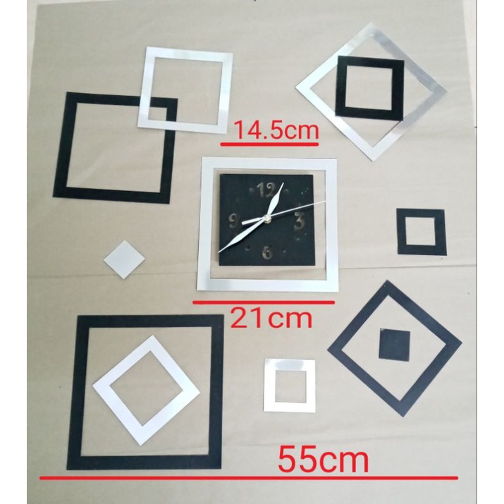 Đồng hồ gương dán tường mẫu kết hợp nhiều hình ô vuông, hình tròn. Bạn cần tự dán đồng hồ nên có thể sắp xếp vị trí các chi tiết theo ý riêng.Ảnh sản phẩm shop chụp chưa bóc lớp phim bảo vệ bề mặt, bạn bóc ra sẽ thấy sáng bóng hơn.