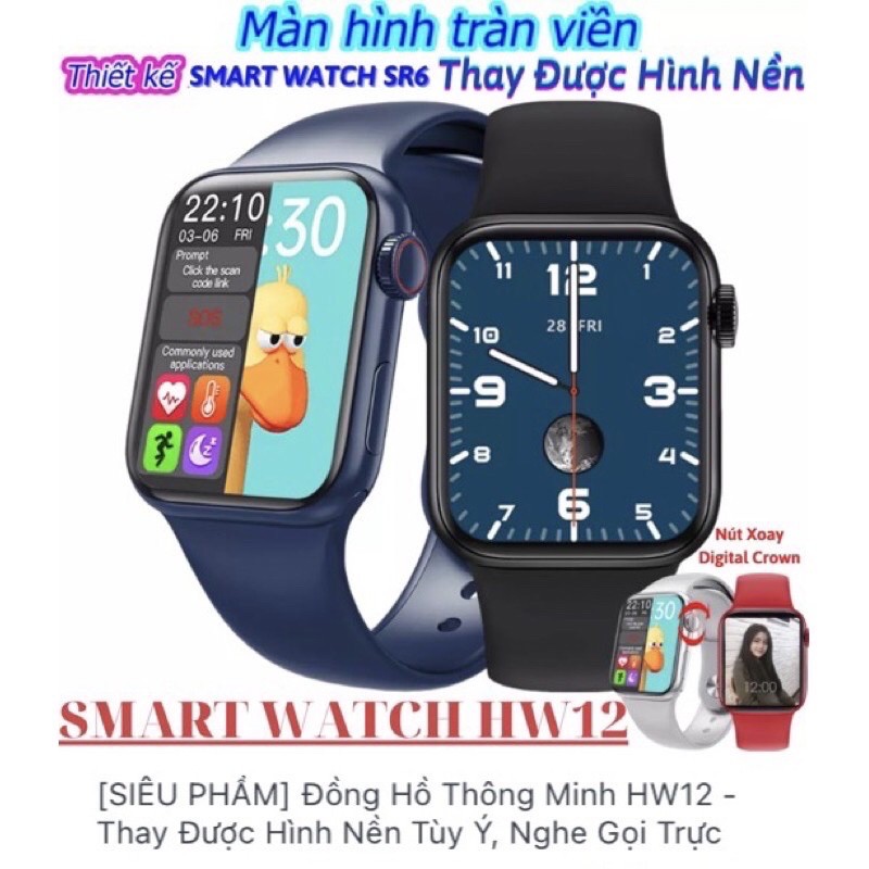 Đồng Hồ Thông Minh HW12 Seri 6 Tiếng Việt Thay ảnh Thay dây Nghe gọi Núm xoay Cảm ứng siêu mượt