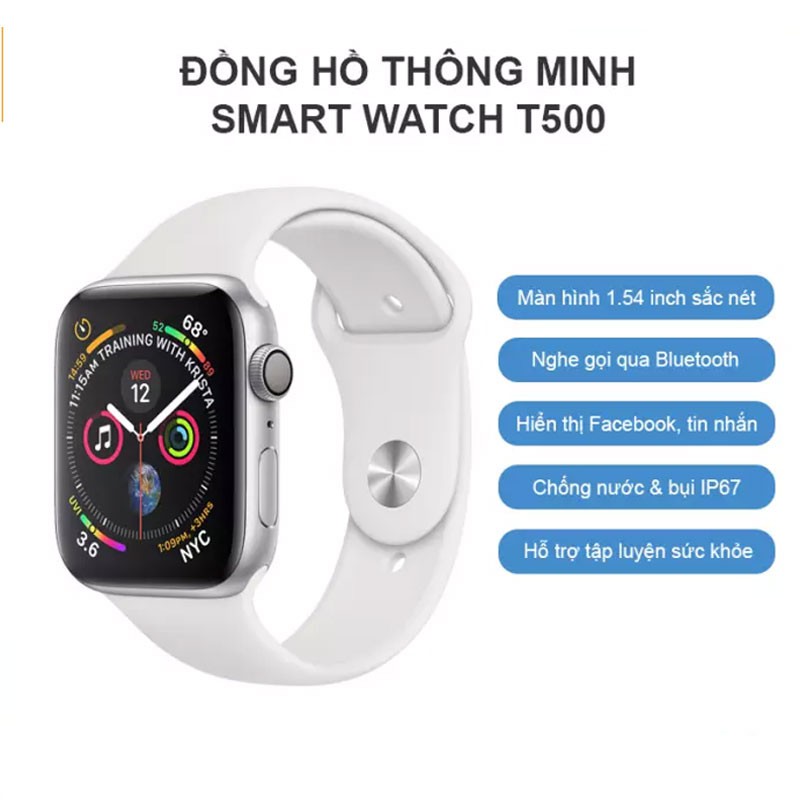 Đồng hồ thông minh T500 Seri 5 thế hệ mới nhất, nghe gọi, đo nhịp tim, thay dây, chống nước IP67