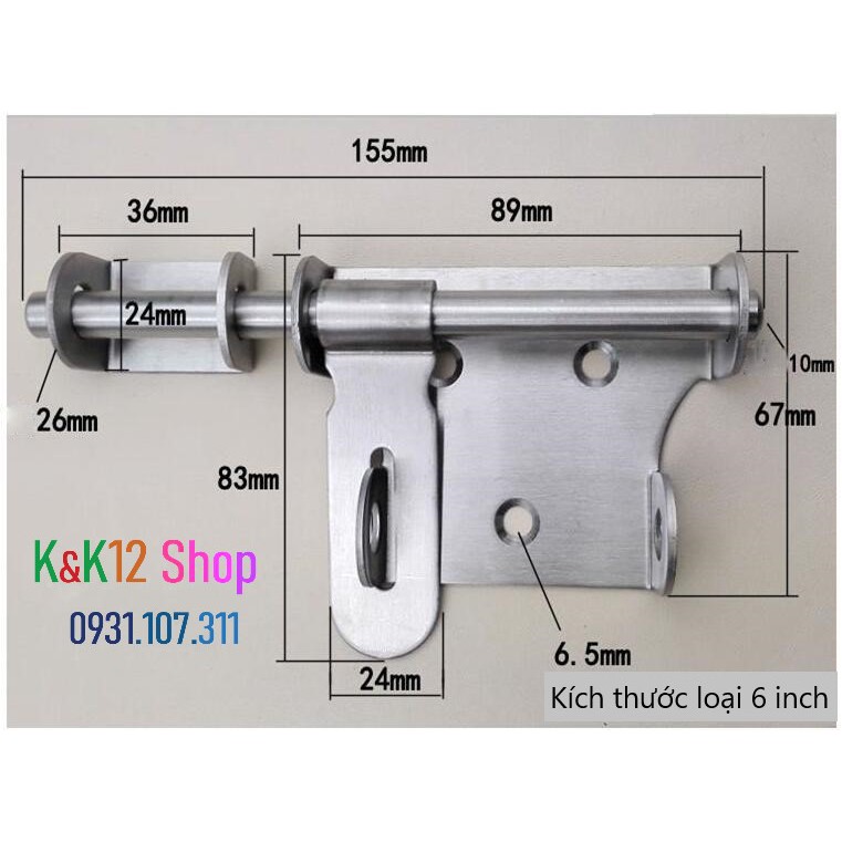 Giới thiệu [ Độc quyền] Chốt khóa cửa, then cửa bằng thép không gỉ K04 loại lớn 4 inch, 6 inch