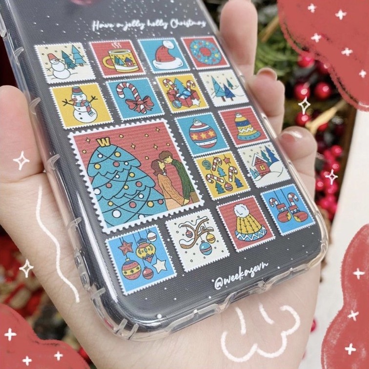 [Độc quyền] Ốp lưng iPhone trong suốt chống va đập Weekase in hình nhiều tem chủ đề noel, tất cả dòng máy