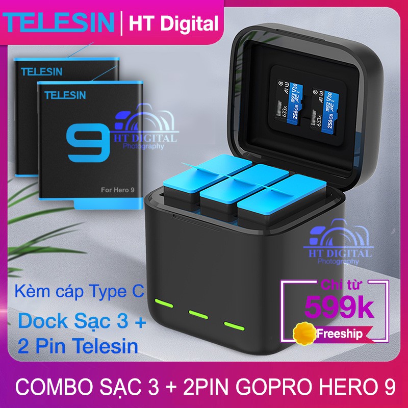 Cameras & Flycam > Phụ kiện máy ảnh > Bộ sạc pin || Dock Sạc 3 + 2 Pin Telesin Có Nắp Đậy - Hộp Sạc Pin GoPro Hero 9 10 Telesin - Pin Máy Quay Hành Trình GoPro Hero 10Còn hàng