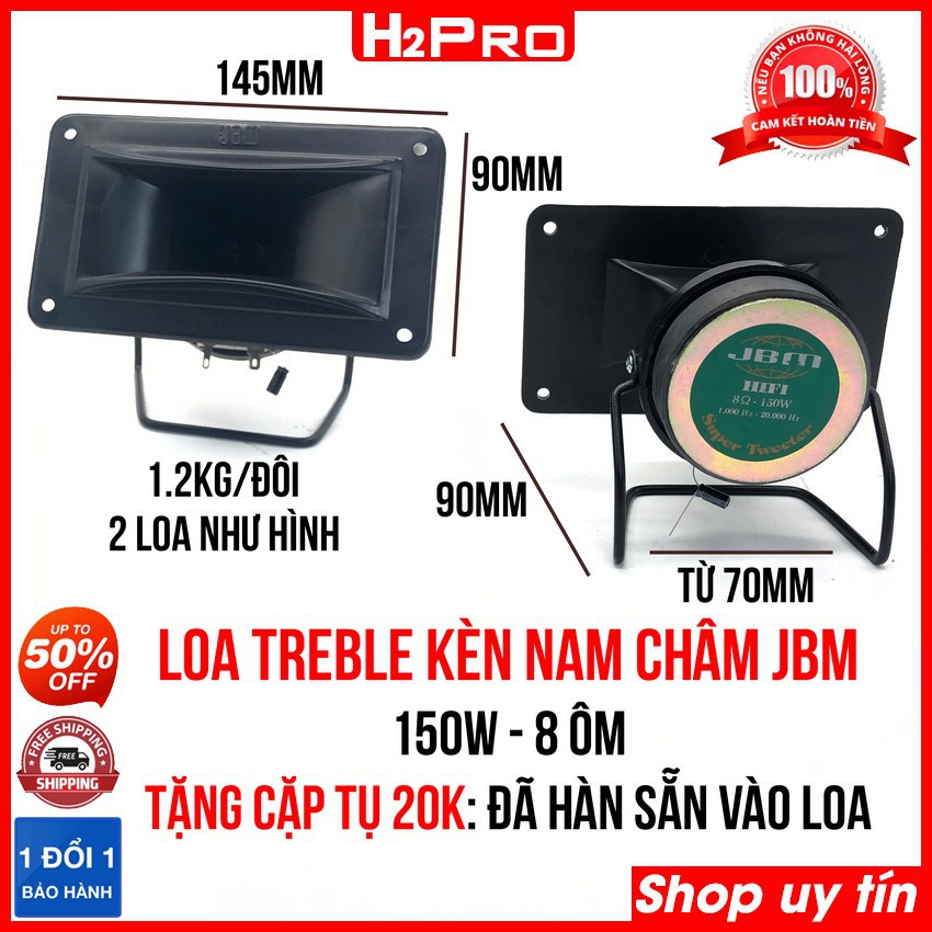 Đôi loa treble kèn JBM H2Pro 150W-8 ôm-từ 70, loa treble nam châm rời cao cấp (tặng tụ 20K, hàn sẵn tụ vào loa)Đặc điểm nổi bật của Đôi loa treble kèn JBM: