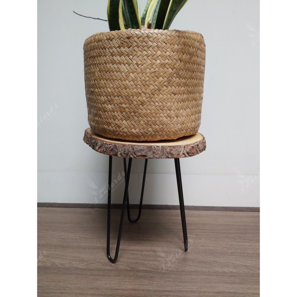 Giới thiệu Đôn để chậu cây bằng khoanh gỗ me tây đường kính 30-35cm và chân sắt sơn tĩnh điện
