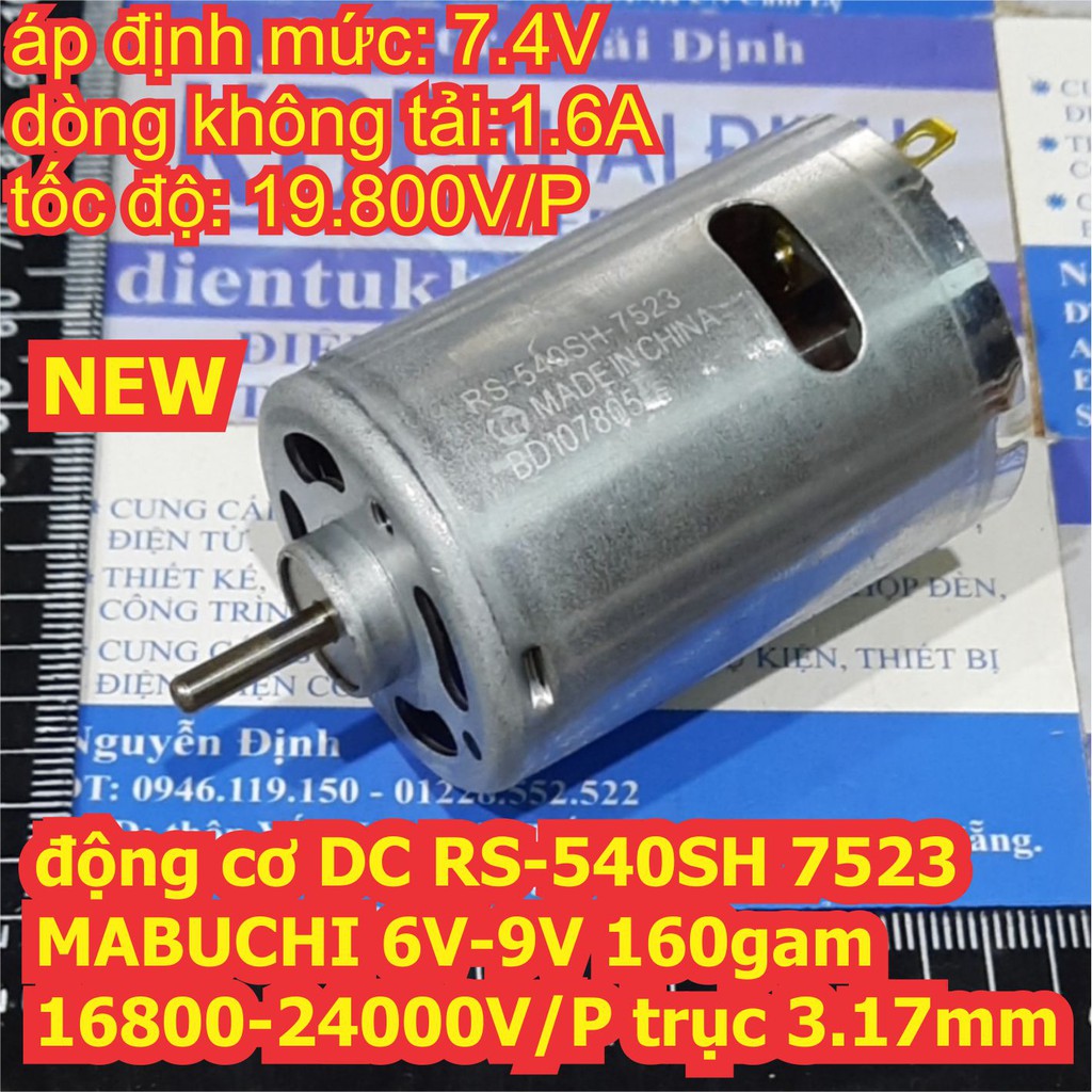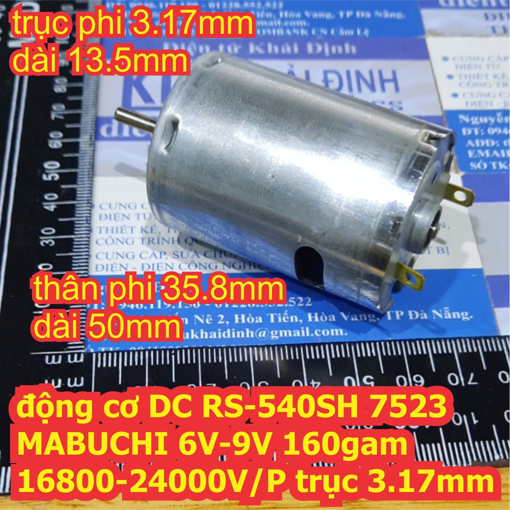 động cơ DC RS-540SH MABUCHI 7523 6V-9V 16800-24000V/P 160g trục 3.17mm kde6735