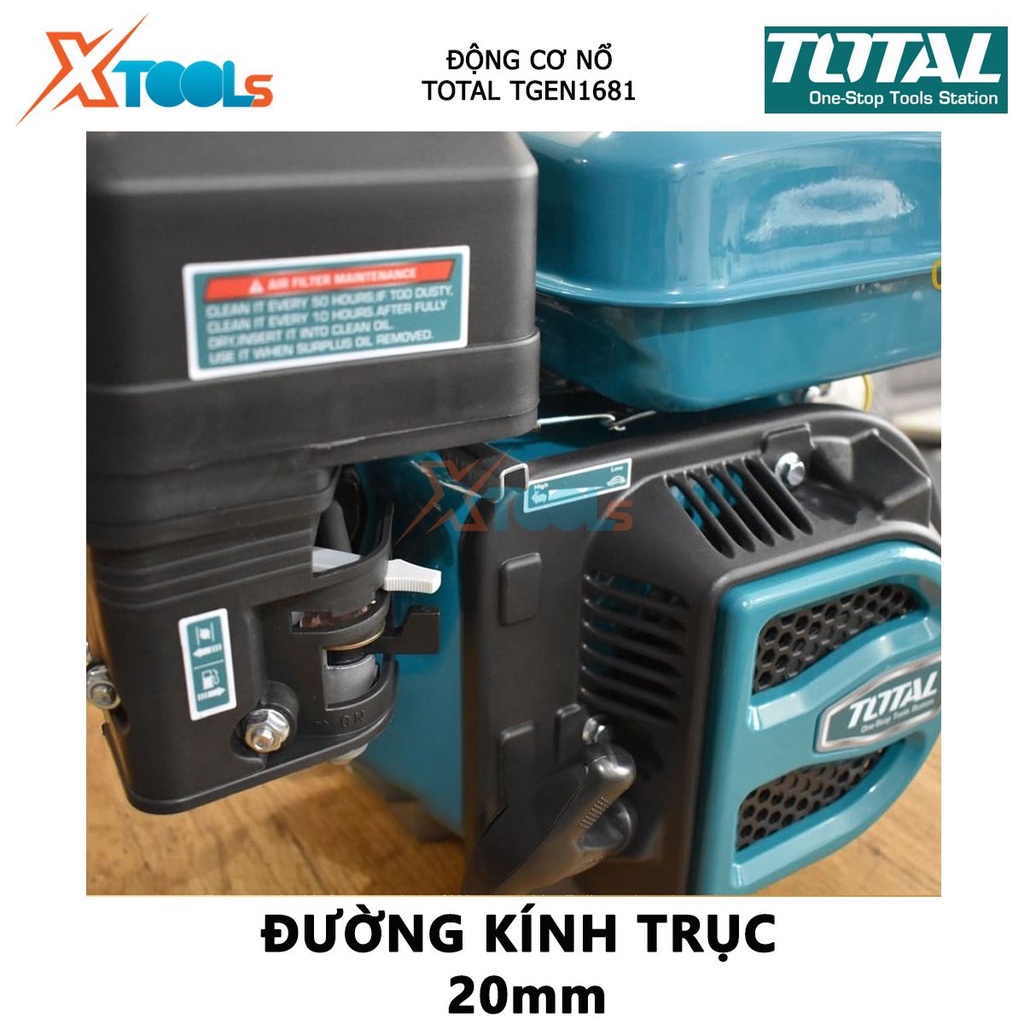 Động cơ nổ TOTAL TGEN1681 đầu nổ dùng xăng Loại động cơ 4 thì, OHV, Đầu ra tối đa 5.5HP, Đường kính trục 20mm, Dung tích