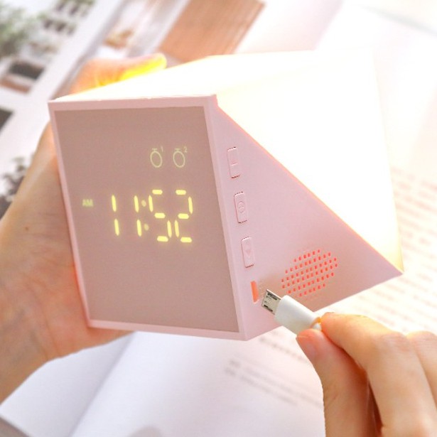 Đồng hồ báo thức thông minh rubik giúp huấn luyện giấc ngủ, gọi chủ nhân mỗi sớm mai thức dậy đúng giờ bằng giọng nói dễ thương, đáng yêu.- Cấu tạo: 5 nút bấm, 4 nút chia điều cho 2 bên để điều chỉnh giờ, ngày tháng, báo thức, xem nhiệt độ xung quanh bạn, nút trên đỉnh đầu dùng để điều chỉnh đèn.
