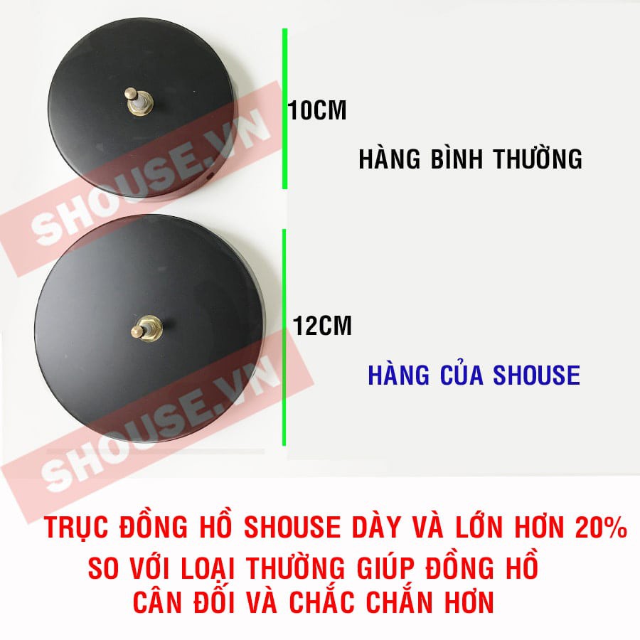 - Trục giữa của đồng hồ 12cm (lớn hơn loại thường 2cm): giúp đồng hồ cân đối và chắc chắn hơn