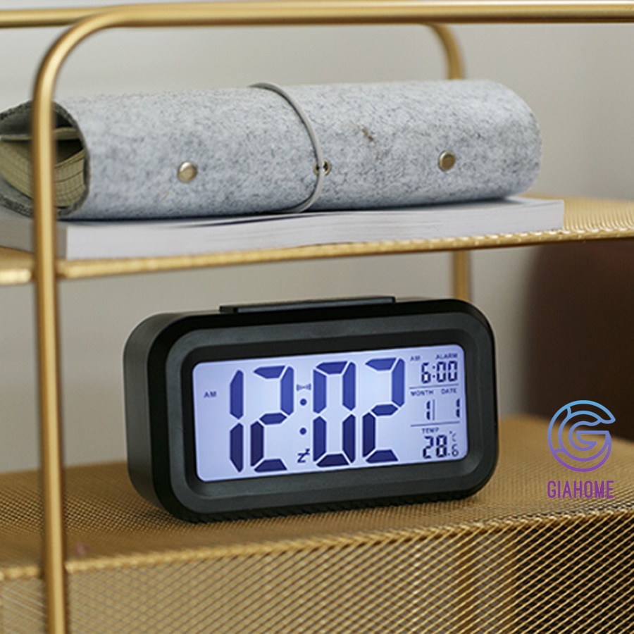 Đồng hồ để bàn báo thức điện tử đa chức năng cảm biến đèn nền ban đêm, nhiệt độ, thời gian, lịch, báo thức màn LCD C1019