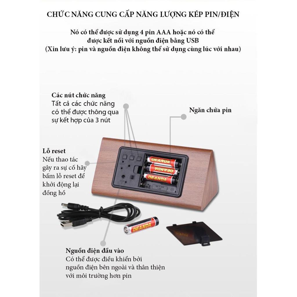 Đồng hồ điện tử để bàn, đồng hồ gỗ led thông minh Phiên Bản Hiển Thị Nhiệt Độ Pin Sạc - USB