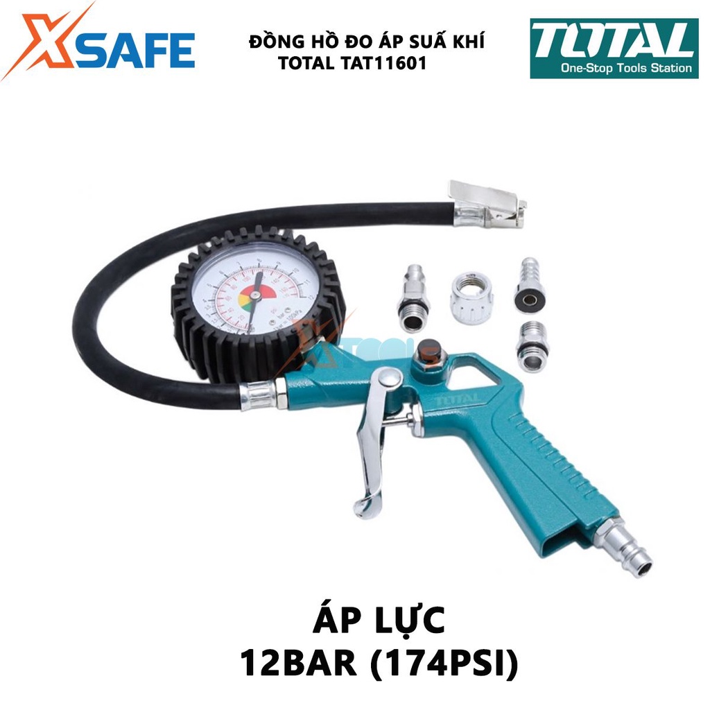 Đồng hồ đo áp suất khí Total TAT11601 Dụng cụ bơm hơi khí có đồng hồ Áp lực 12bar(174psi) Chiều dài vòi 350mm