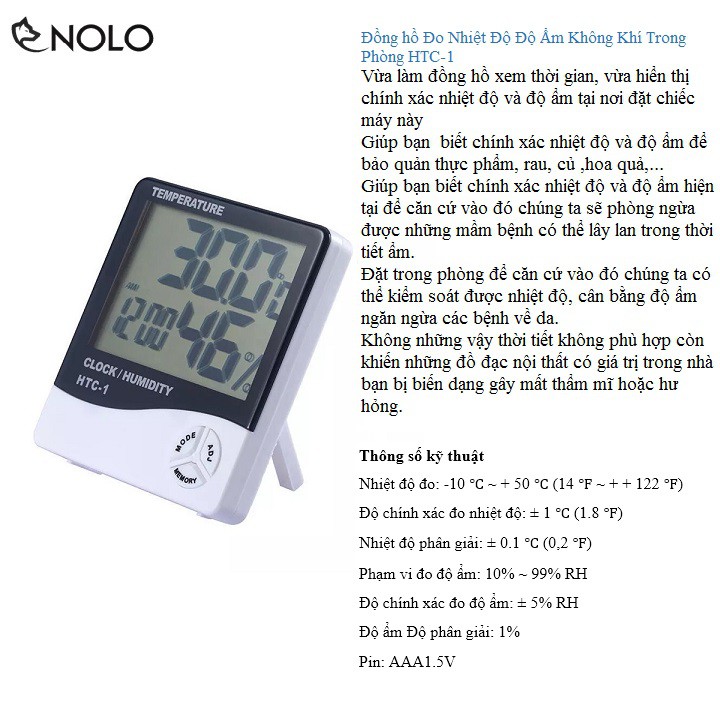 Đồng Hồ Đo Nhiệt Độ Độ Ẩm Không Khí Trong Phòng HTC-1 Xài 1 Viên Pin AAAVừa làm đồng hồ xem thời gian, vừa hiển thị chính xác nhiệt độ và độ ẩm tại nơi đặt chiếc máy này