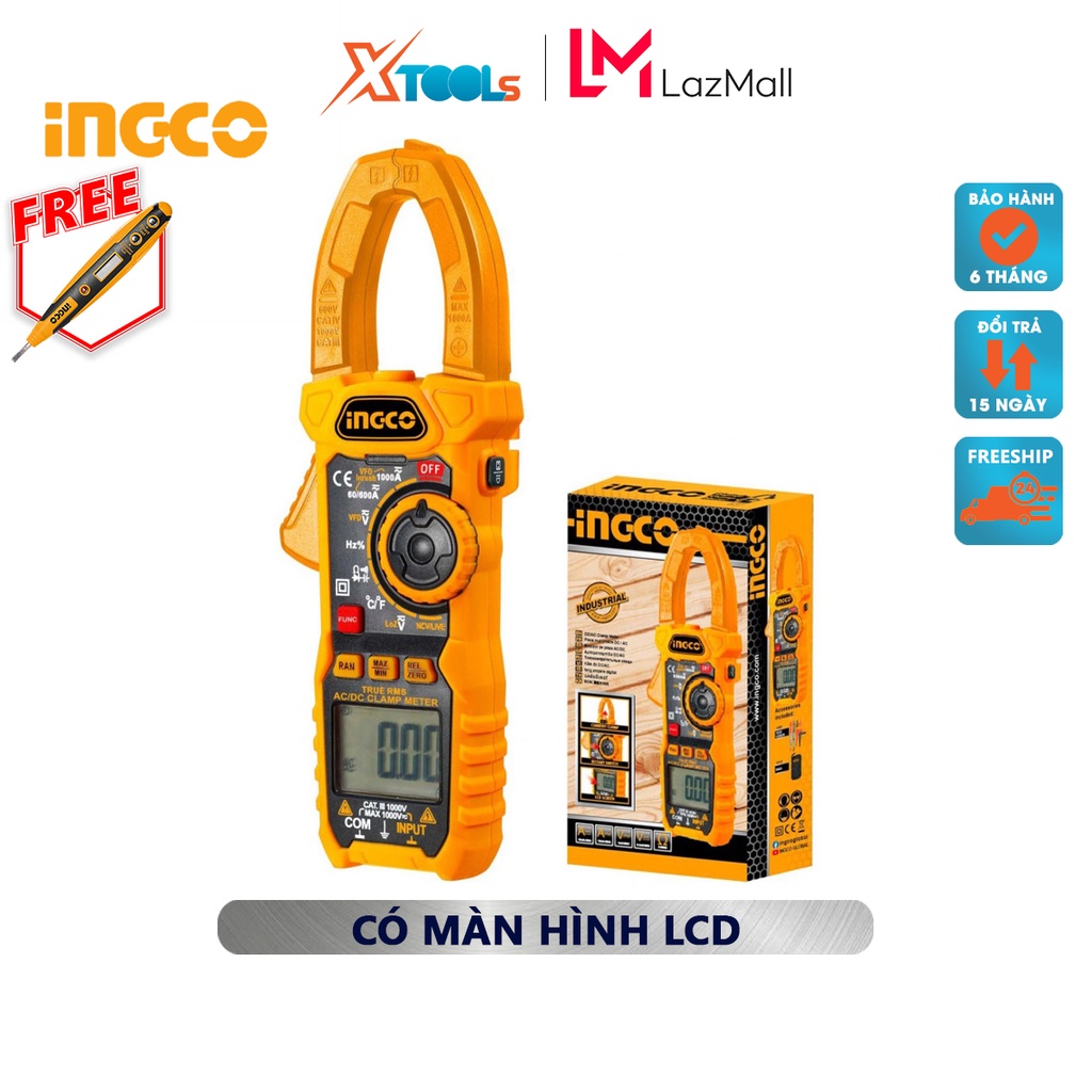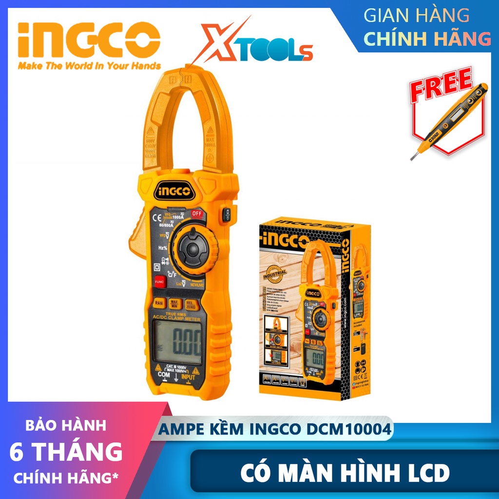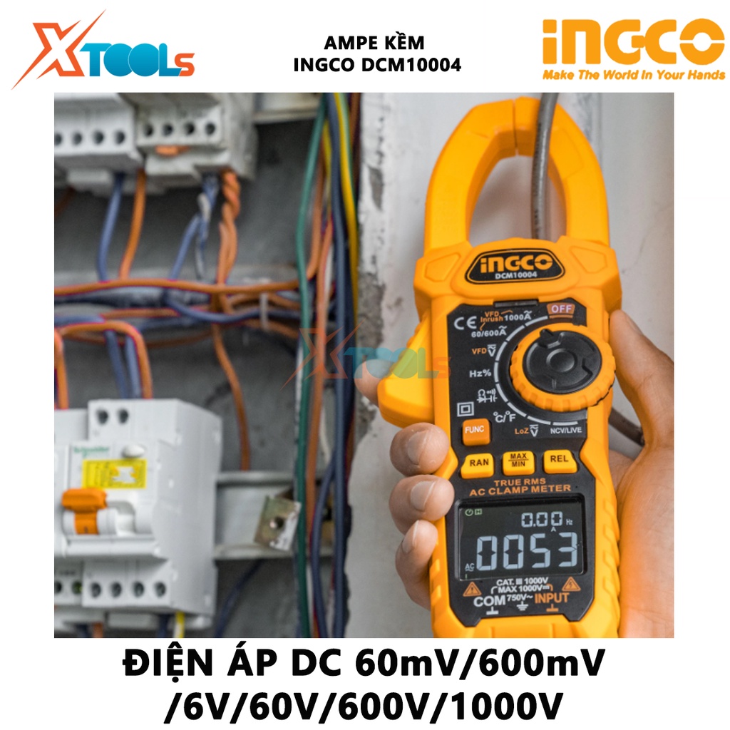 Đồng hồ kẹp AC/DC INGCO DCM10004 | ampe kìm Kỹ thuật số 6000 đếm, lưu dữ liệu, có đèn nền hiển thị, đèn flash đồng hồ vạ
