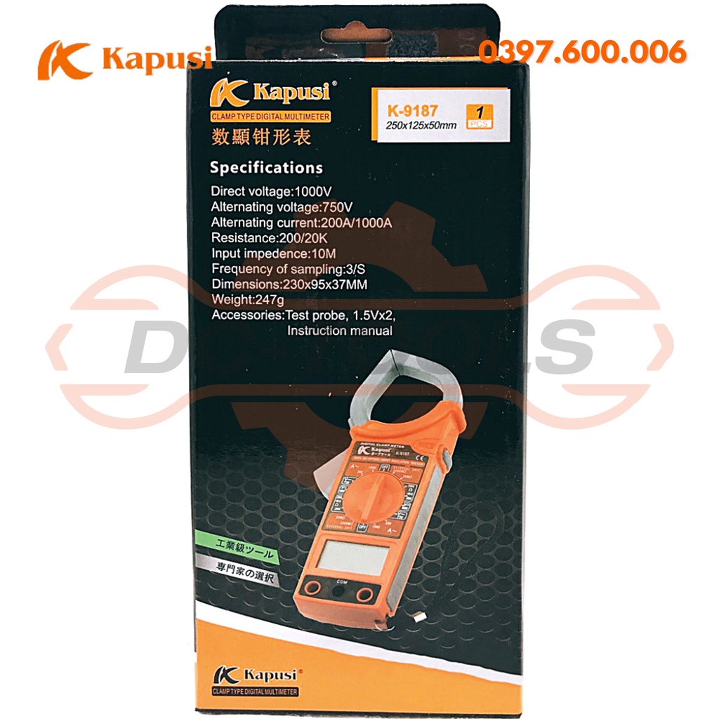 ĐỒNG HỒ KẸP Đo Dòng Điện AMPE dạng Kìm DÒNG KAPUSI K-9187 CHÍNH HÃNG DC TOOLS