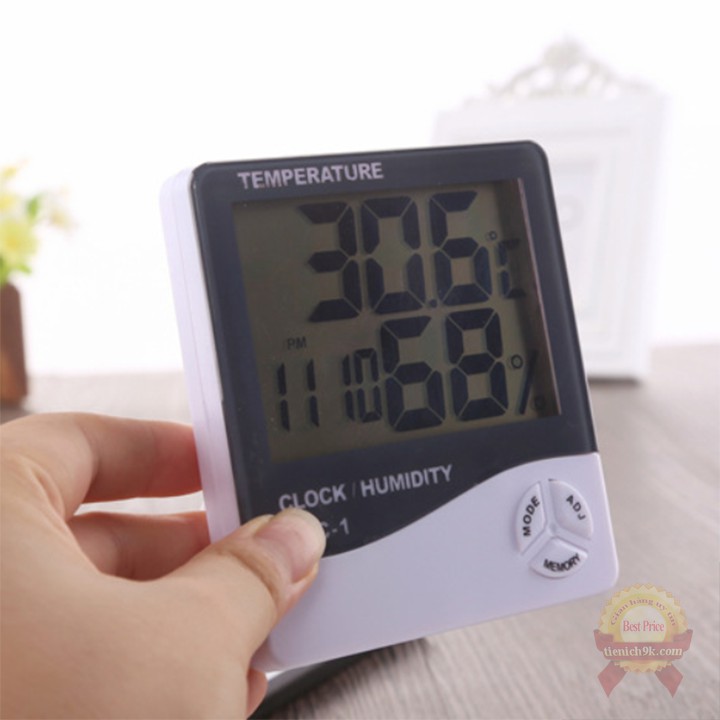 Đồng hồ nhiệt kế đo độ ẩm màn hình LCD Tempera vạn năng để bàn học làm việc HTC 1