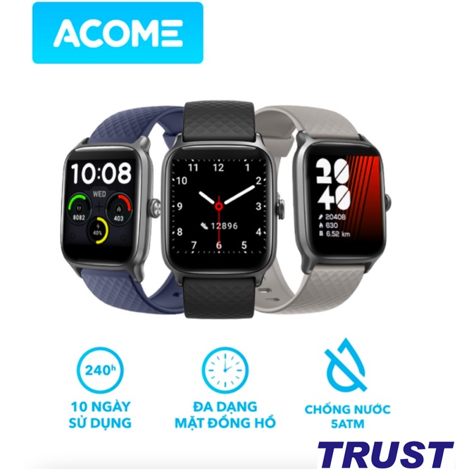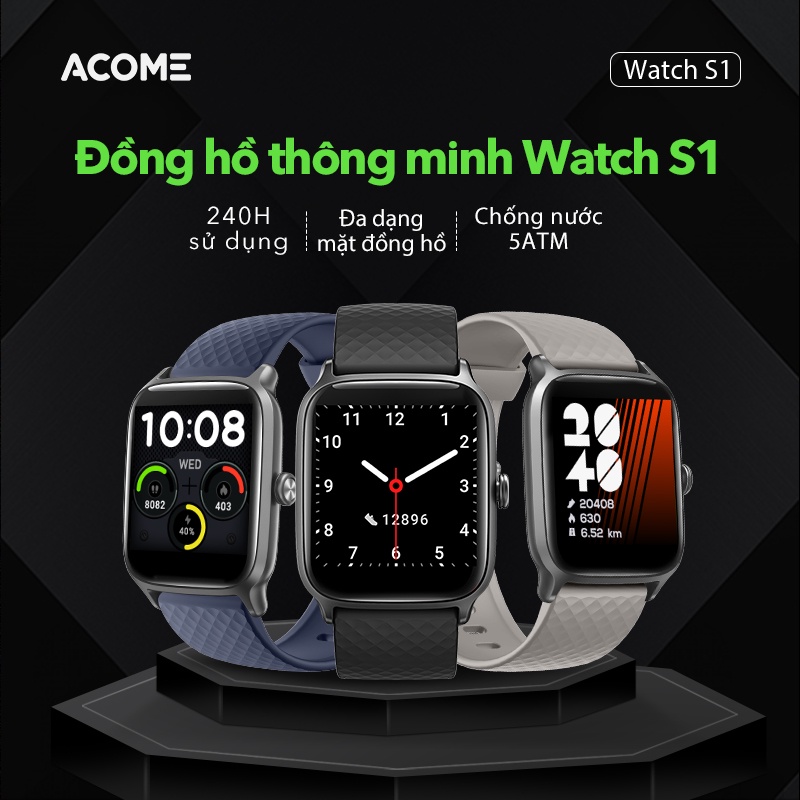 Đồng Hồ Thông Minh ACOME Smart Watch S1 Tiện Ích Chống Nước Nhận Thông Báo, Thay Hình Nền, Đo Nhịp Tim Chống Nước 5ATM