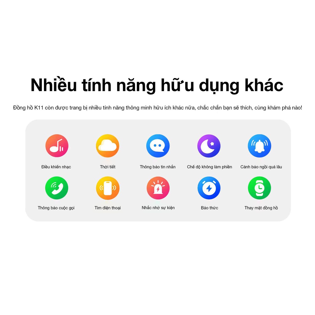 Điều khiển nhạc, thời tiết, thông báo tin nhắn, chế độ không làm phiền, cảnh báo ngồi quá lâu, thông báo cuộc gọi, tìm điện thoại, nhắc nhở sự kiện, báo thức, thay mặt đồng hồ.