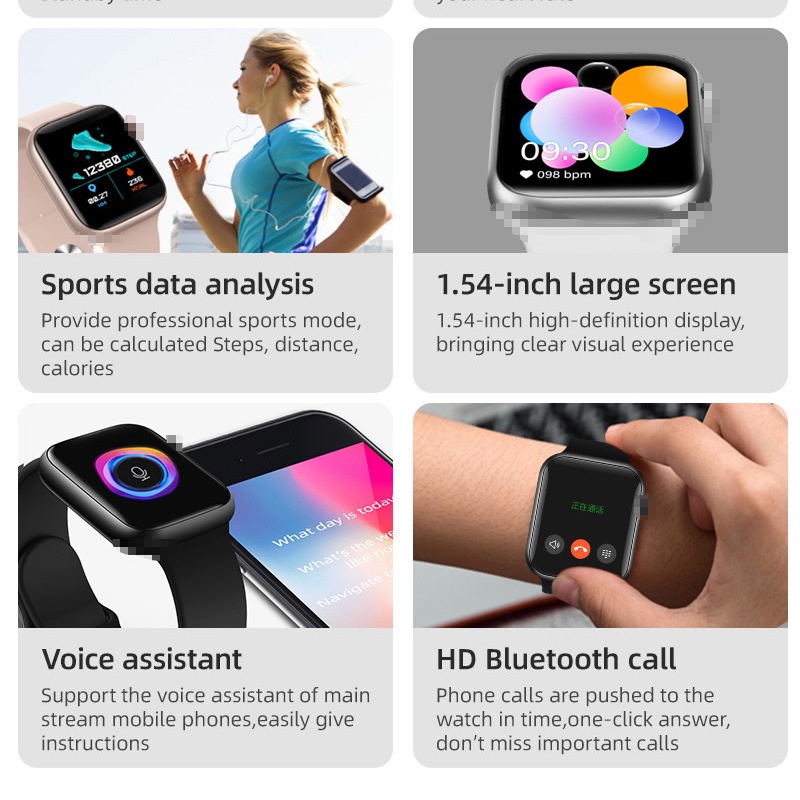 ✅ Đồng hồ thông minh có khả năng chịu nước: IP68 (Khả năng chống nước nhẹ như rửa tay hay mưa nhẹ không sử dụng trong khi tắm và đi bơi, ngâm sản phẩm trong nước)