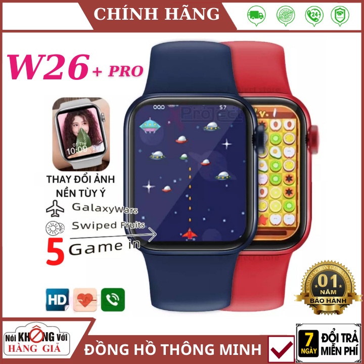 ✅ CHÍNH SÁCH BẢO HÀNH Đồng Hồ Thông Minh W26 Plus 💥 FREESHIP 💥 seri 6 chơi game , Tràn Viền 44mm , Nghe Gọi Trực Tiếp, Nút Xoay Digital Crown