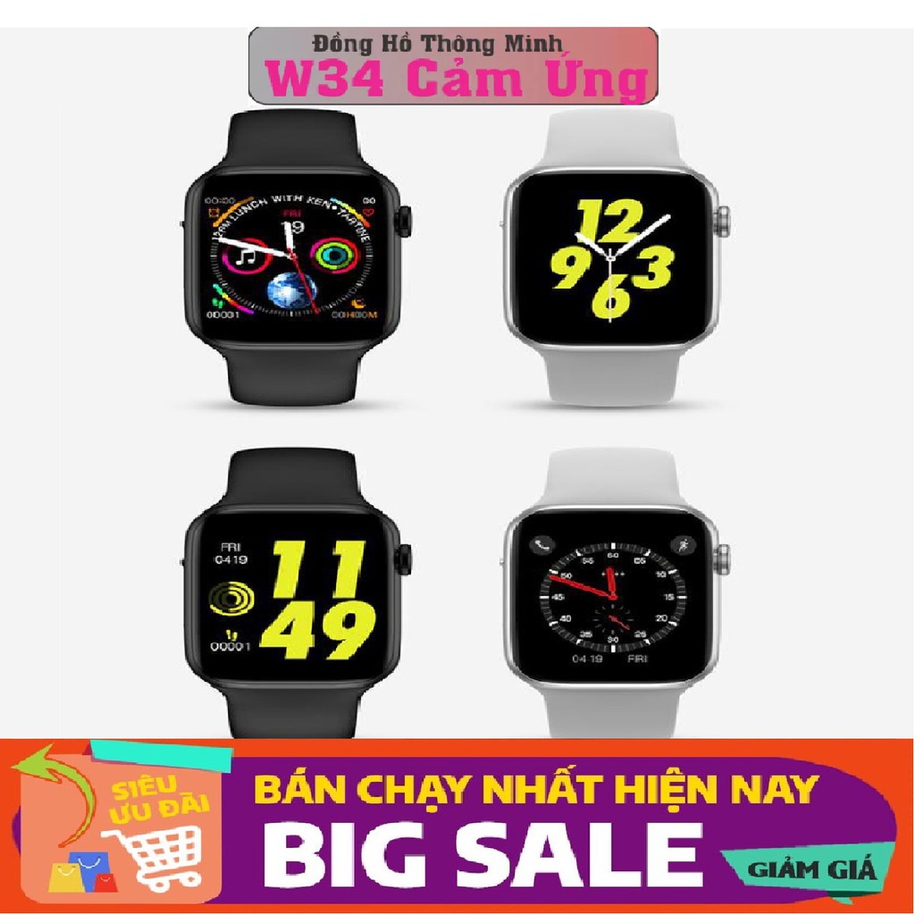 Đồng Hồ Thông Minh W34 iWatch Series 4 Hỗ Trợ Tiếng Việt Nghe Gọi - Đồng Bộ Thông Báo Từ Điện Thoại Qua Bluetooth
