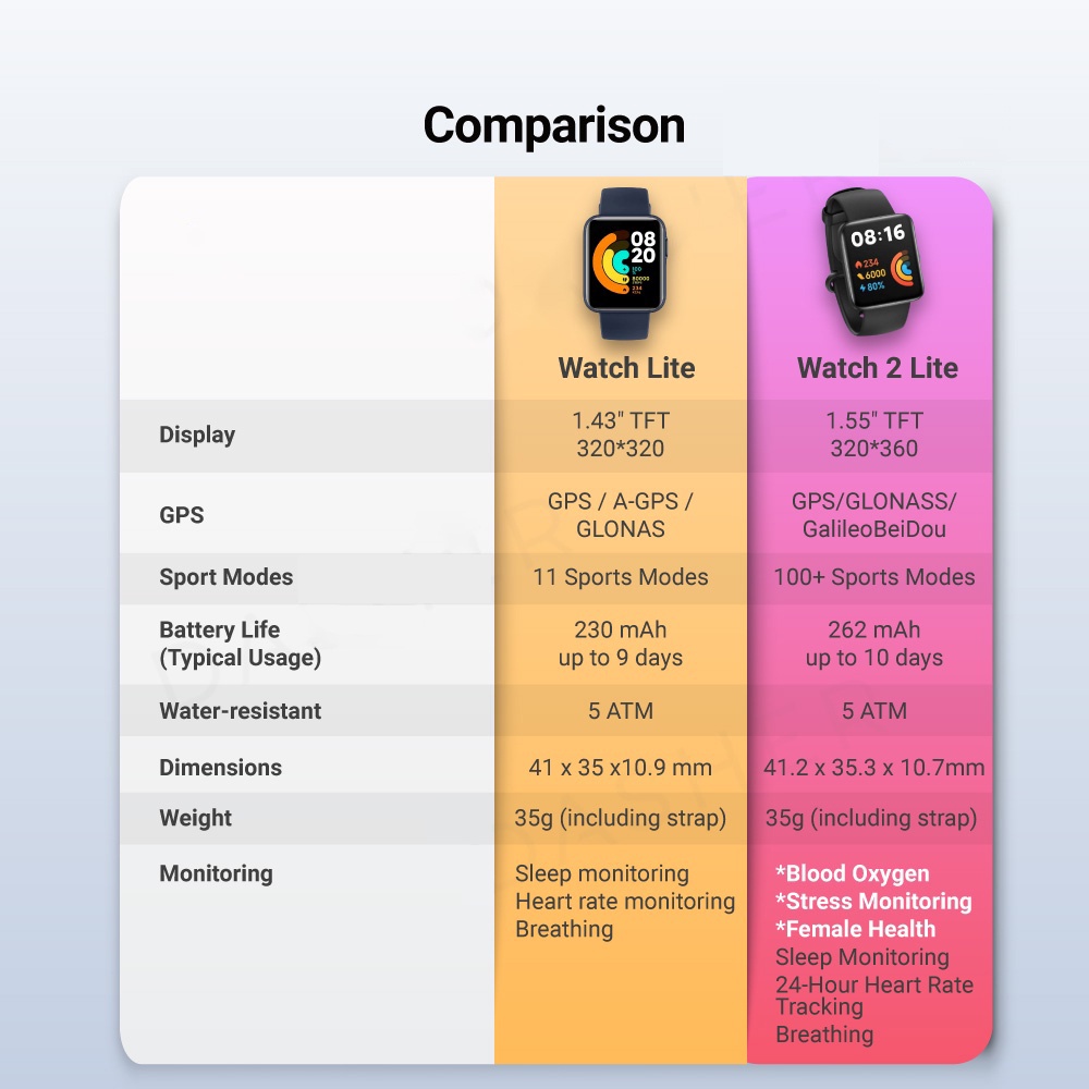 Điện Thoại & Phụ Kiện > Thiết bị đeo thông minh > Đồng hồ thông minh & Vòng đeo tay sức khỏe || Đồng Hồ Thông Minh Xiaomi Redmi Watch 2 Lite Smart Watch Cảm biến SpO2 1.55" Multi GPS 5 ATM 100+ WorkoutCòn hàng