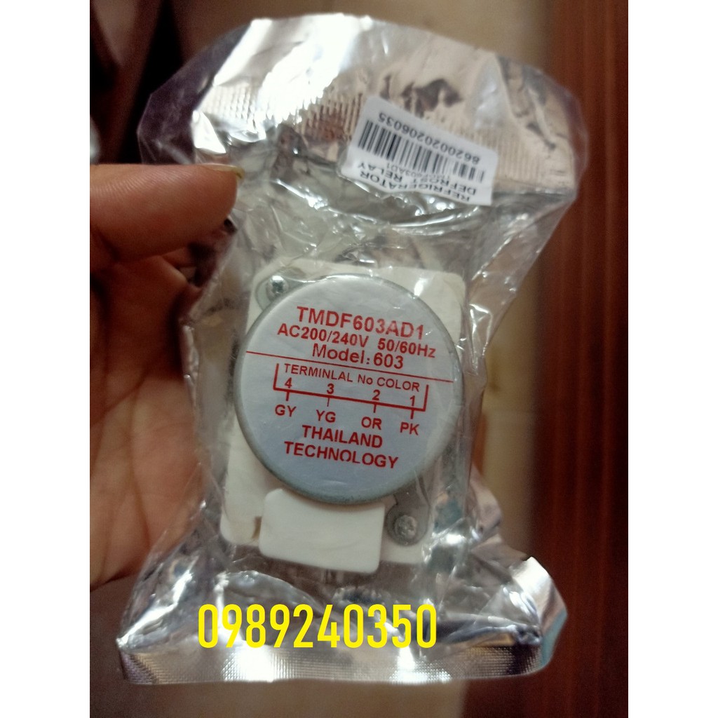 Có chức năng ngắt điện vào máy nén và cấp điện cho hệ thống điện trở xả đá để tẩy tuyết dàn lạnh. Tùy theo cấu tạo của timer, thời gian xả đá có thể 6h, 8h, 12h, 24h . Thời gian xả đá từ từ 18 – 30 phút. Đồng hồ thời gian hay còn được gọi là rơ le thời gian nó thực sự rất quan trọng trong sự hoạt động của một chiếc tủ lạnh không bám tuyết .