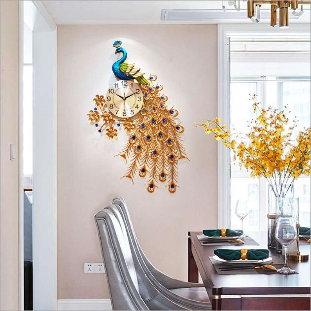 Giới thiệu Đồng hồ trang trí chim công đậu cành mai treo đứng chính hãng