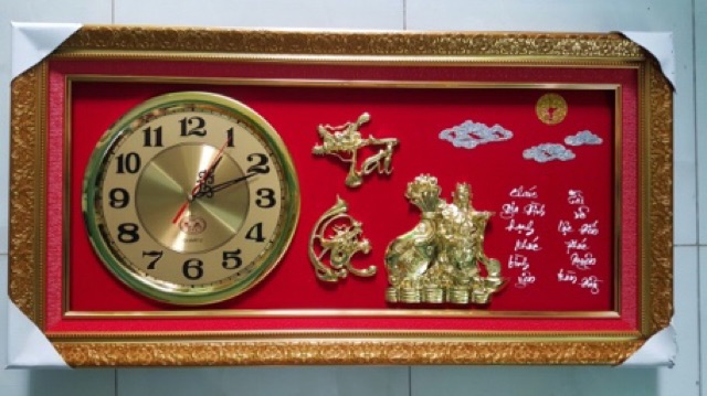 • Tranh đồng hồ - Tranh đá xi vàng được làm từ bột đá phủ xi vàng , làm trên nền nhung đỏ trông rất đẹp , sang trọng , cho hình ảnh rõ nét, màu sắc trung thực làm nổi bật chất nghệ thuật. Rất phù hợp cho việc trang trí nhà cửa , làm quà biếu tặng người thân , làm quà tặng Tân Gia, Khai trương cửa hàng ..... + Tranh được bao bọc bên ngoài bằng viền khung nhựa bền, đẹp và rất sang trọng. Mặt phía trước được làm bằng kính phía sau là lớp ván trống mốc, ẩm ướt ... + Vệ sinh dễ dàng bằng khăn ướt, không bị phai màu. + Tặng kèm đinh treo _ Shop ship toàn quốc , bao vận chuyển và lắp đặt - Nhận đặt hàng sỉ & lẻ theo mẫu mã và kích thước của khách hàng * KÍCH THƯỚC SẢN PHẨM : 46*86 * Bên shop cung cấp các loại tranh : Tranh CANVAS, TRANH DÁN TƯỜNG 3D, SƠN DẦU, TRANH ĐỒNG, TRANH THÊU TAY, TRANH PHÙ ĐIÊU, TRANH KHẢM.. Xin liên hệ với shop để có được mẫu tranh ưng ý nhất. *. Hotline - Zalo : 091. 876. 4433Giá BABAon