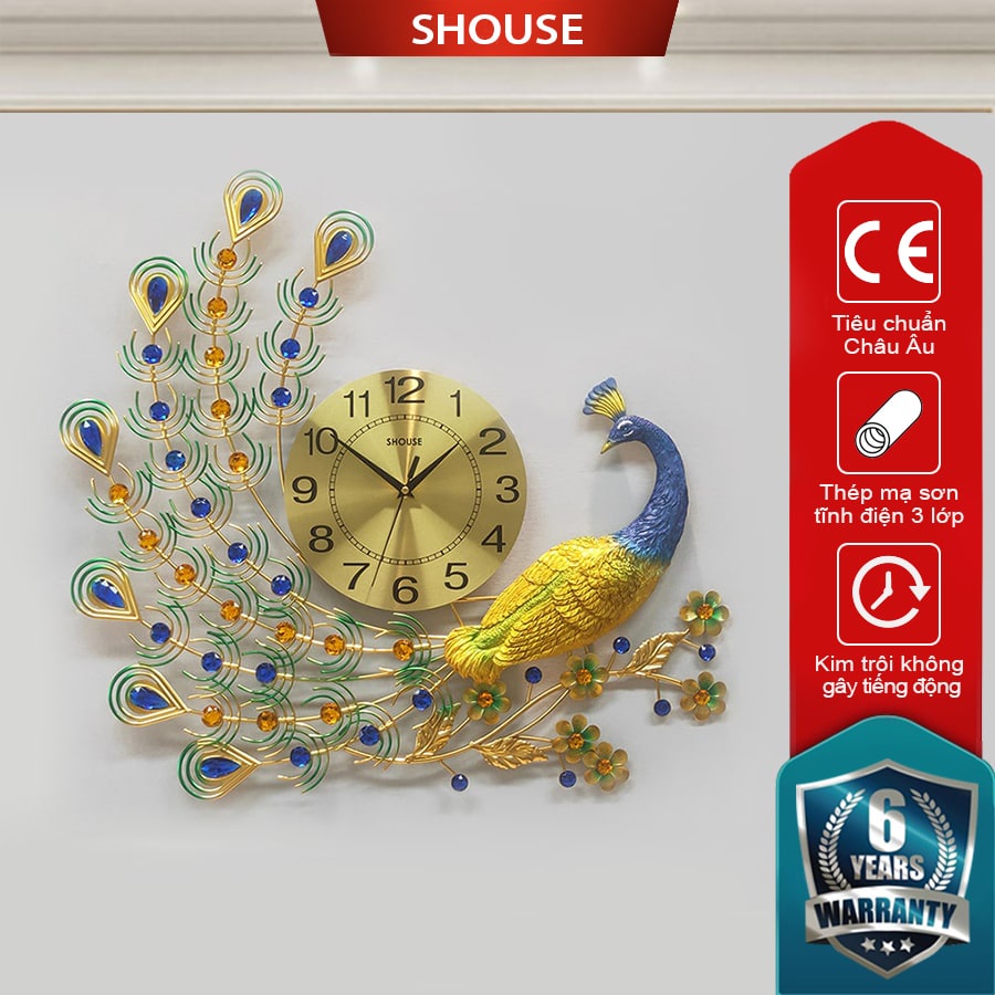 Giới thiệu Đồng Hồ Treo Tường Trang Trí con chim công khổng tước Shouse A22 decor đẹp phòng khách kim trôi cao cấp nghệ thuật