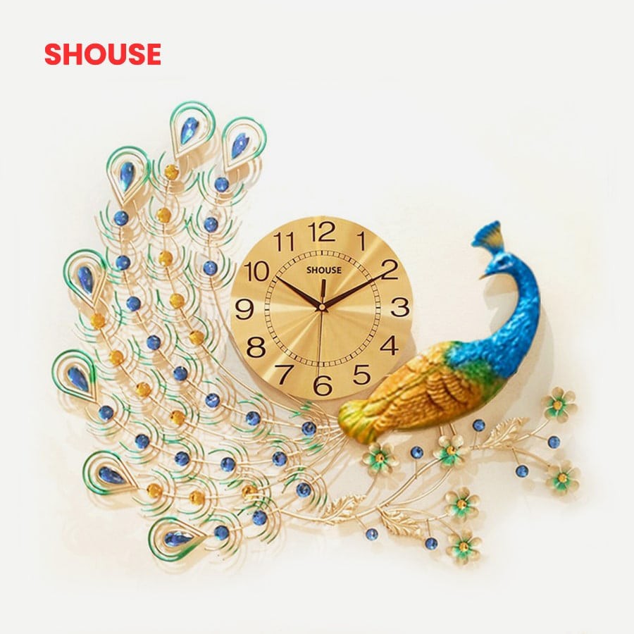 Nhà cửa & Đời sống > Trang trí nhà cửa > Đồng hồ || Đồng Hồ Treo Tường Trang Trí con chim công khổng tước Shouse A22 decor đẹp phòng khách kim trôi cao cấp nghệ thuậtCòn hàng