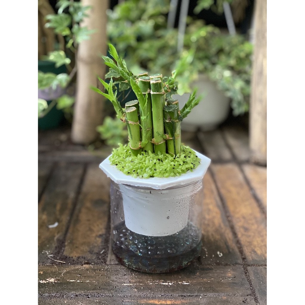 Nhà cửa & Đời sống > Làm vườn > Cây cảnh || Cây Dracaena sanderiana (Cây Phất Lộc) kèm chậu thuỷ sinh 2 lớp không cần tướiCòn hàng